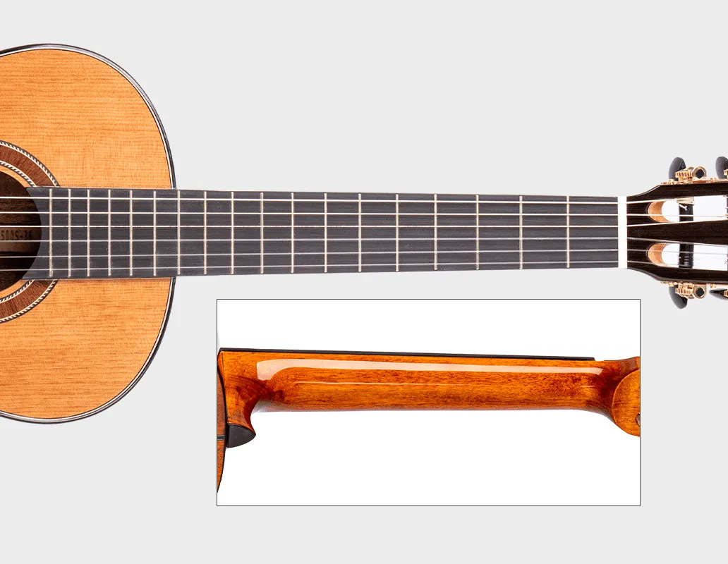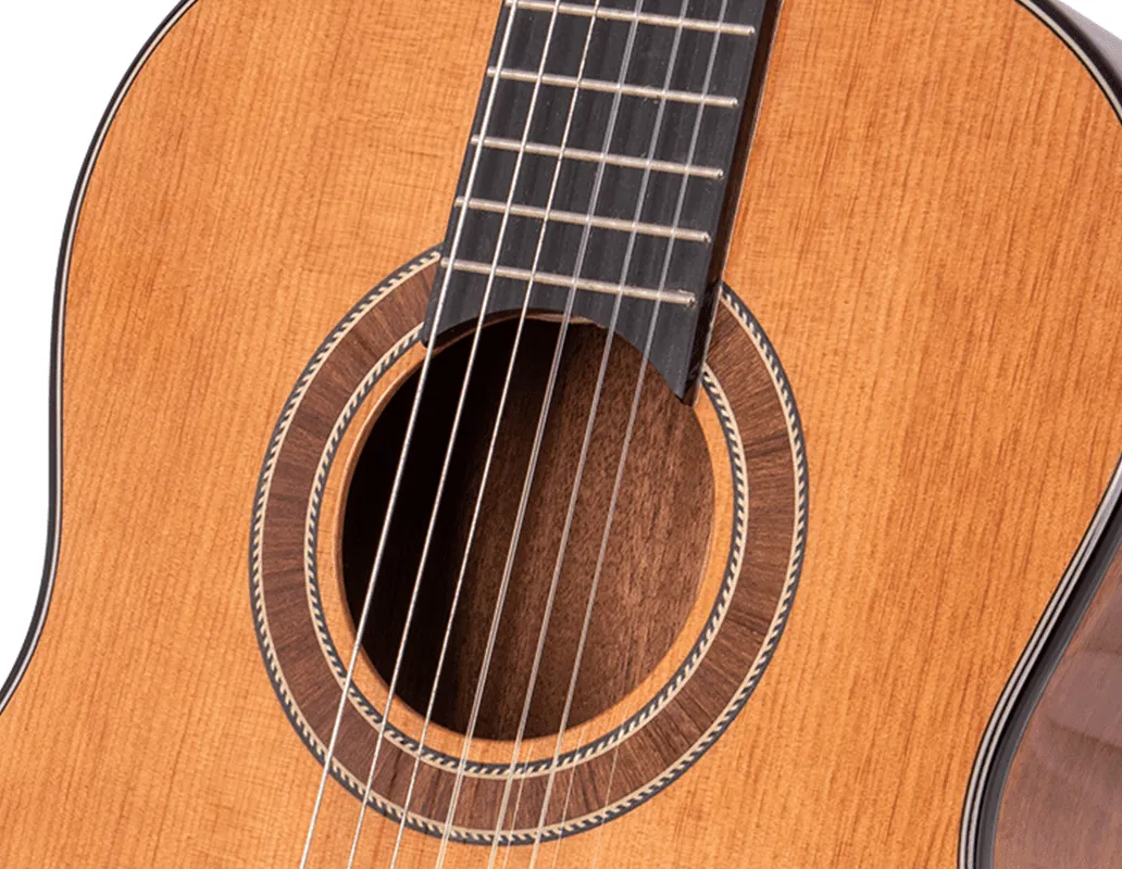 The Cedar top has a beautiful texture, which gives people a natural beauty visually. In terms of timbre, it can produce a warm, soft and charming sound, with sweet treble and mellow bass. The Cedar top is sensitive to the feedback of playing, which can well reflect the subtle movements and emotional changes of the performer. Its good resonance characteristics make the sound more ductile and rich. Moreover, with the use and time, the tone of Cedar will become more mature and warm, bringing a more wonderful musical experience to the performer.