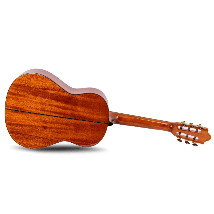 The texture of Sapele wood is even and clear, adding a natural beauty to the guitar. In terms of acoustic properties, it can bring warm and full mid-low frequencies to the guitar, enhancing the thickness and richness of the sound. Sapele wood has good stability, can adapt to different environmental conditions, and is not easy to deform, thus ensuring the stability of the guitar’s tone. It also has a certain resonance effect, which can assist the sound of the Top, making the sound of the entire guitar more harmonious and balanced. The Sapele wood Back & Side make the classical guitar have excellent performance in both tone and quality, bringing a satisfactory playing experience to the player.